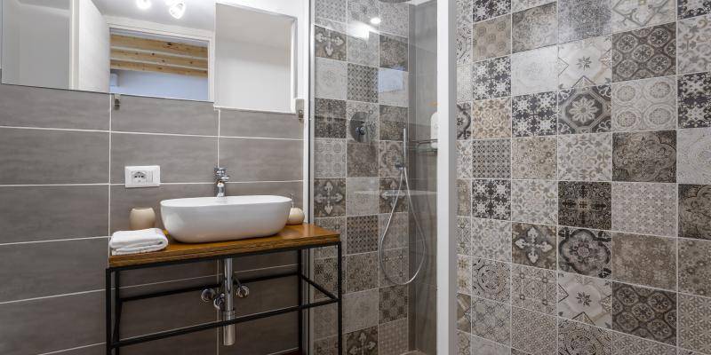 Sempre sotto il soppalco è stato ricavato un comodo bagno con ampia doccia.
